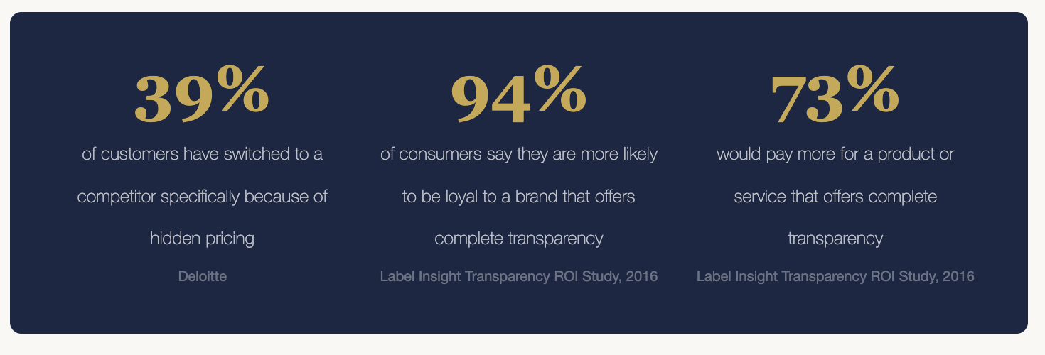 And here's the stat that should make you put down your coffee: a Label Insight study of over 2,000 consumers found that 94% are more likely to be loyal to a brand that's fully transparent — and 73% would pay more for it. More. Not the same. More.